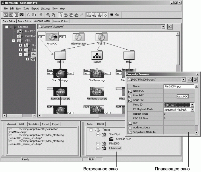 Рис. 1.10. Редактор сценариев со встроенным и со свободно плавающим окном.