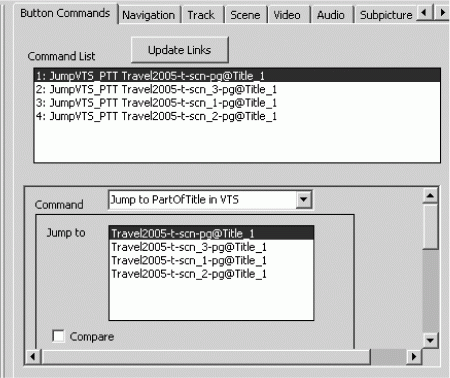 Набор свойств, отображаемых в окне редактирования, изменяется при выборе того или иного объекта. Пользователь может выбирать эти свойства, просто выбирая соответствующие закладки в окне редактирования (рис. 1.11). Чаще всего пользователь добавляет и редактирует команды навигации, меняет цвета кнопок меню и добавляет эффекты для субтитров.