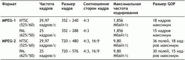 Формат DVD-видео использует набор стандартов MPEG, определяющих разрешение изображения, частоты кадров, соотношения сторон кадра и другие параметры. Программа Scenarist позволяет импортировать только DVD-совместимые MPEG-файлы, поэтому при кодировании видео нужно убедиться в том, что все параметры установлены корректно. Таблица 2.1 содержит требования к кодированию для поддерживаемых видеоформатов.
