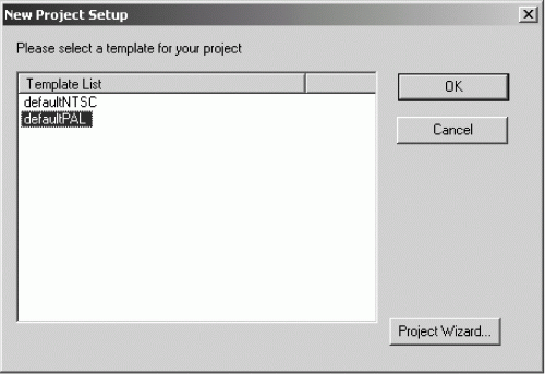 Программа предлагает пользователю выбрать телевизионную систему PAL или NTSC для работы с проектом. Пользователь может либо просто создать новый проект, либо запустить мастер, нажав на кнопку Project Wizard (Мастер проектов). После отображения стартового окна мастера следует нажать кнопку Next (Далее), как показано на рис. 3.5.