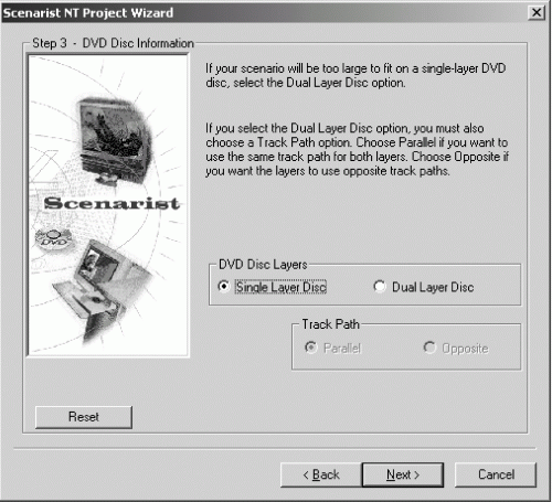 На этом этапе нужно указать, будет ли создаваемый диск однослойным или двухслойным. Выбор осуществляется в соответствующем окне мастера проектов, показанном на рис. 3.9.