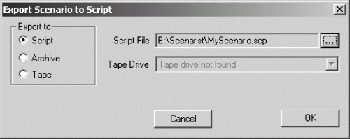 Для экспорта сценария в файл скрипта, архив или на ленту DLT следует выполнить команду меню Export ? Export Project (Экспорт ? Экспорт проекта). Это приведет к отображению диалогового окна экспорта сценариев (рис. 3.23).