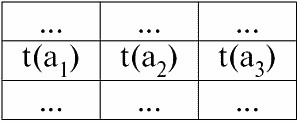 Здесь t(a1), t(a2), t(a3) – именованные значения кортежа t на атрибутах а1, а2, а3.