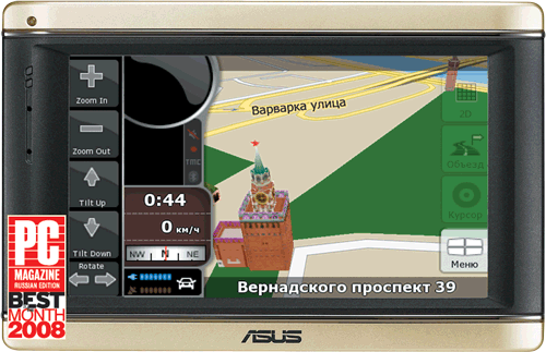 GPS-навигатор с трехмерными картами. В нем реализован «честный» режим 3D, когда на экран выводится объемная карта с полностью трехмерными моделями зданий и объектов, что существенно упрощает ориентацию даже на запутанных многоуровневых развязках. На картах России (в комплекте карты и России, и Европы) отрисованы все эстакады, а для Москвы – здания в центре города и многие исторические объекты. Размер экрана 4,3 дюйма. http://ru.asus.com