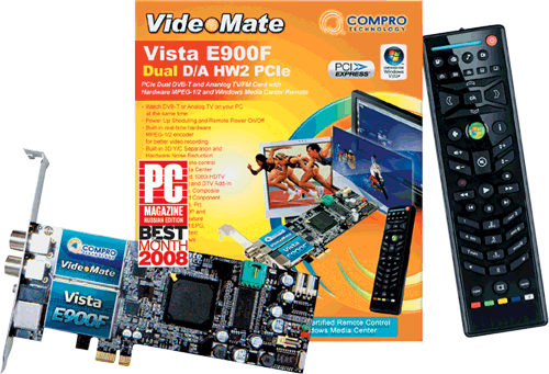 Двухканальный ТВ-тюнер, рассчитанный на прием как цифрового, так и аналогового сигнала (телевидение и FM-радио). Карта имеет два модуля телеприемников (DVB-T и PAL/SECAM/NTSC). Пользователь может одновременно принимать цифровые и аналоговые сигналы в любом сочетании, записывать эфирные передачи с DVD-качеством. www.comprousa.com
