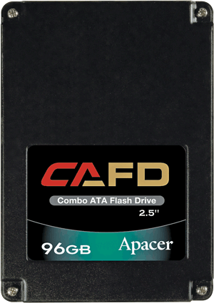Твердотельный флэш-накопитель стандарта Combo ATA Flash Drive. Емкость – 96 Гбайт, память разделена на два блока: 32 Гбайт памяти типа SLC (для ОС и часто используемых программ) и 64 Гбайт памяти типа MLC (для ПО и данных, используемых редко). www.apacer.ru