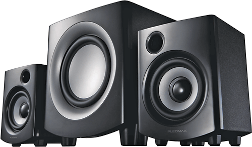 Акустическая система класса 2.1. В комплект входит модуль «усиления качества Hi-Fi», экранированные колонки, сабвуфер (20–20 000 Гц). Сабвуфер и сателлиты сделаны из дерева, предусматривается проводной пульт управления с разъемами для наушников и входами для внешних источников звука. www.samsungpleomax.ru