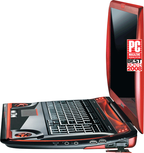 Игровой ноутбук. В максимальной конфигурации оснащается ЦП Intel Core 2 Duo T9600 (2,8 ГГц), видеоадаптером GTX Nvidia GeForce 9800M с 1-Гбайт видеоОЗУ, 4-Гбайт ОЗУ и двумя жесткими дисками (общей емкостью 640 Гбайт). Диагональ экрана 17 дюймов. http://toshiba.com.ru
