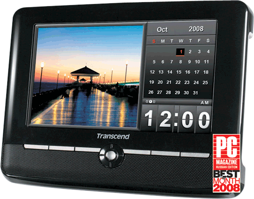 Цифровая фоторамка. с широкоформатным дисплеем (800?480, 7-дюйм) и 2-Гбайт встроенной памятью. Имеется редактор слайд-шоу (MyShow), подсистема AOS (Automatic Orientation Sensor; позволяет автоматически поворачивать снимок в естественную позицию). www.transcendusa.com