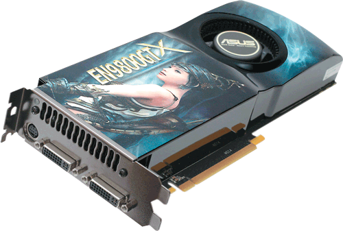 Повышение производительности графических плат в заводских условиях благодаря наращиванию частоты ГП и видеоОЗУ стало обычным делом. Компания ASUSTeK Computer освоила серийный выпуск 3D-ускорителей на базе набора GeForce 9800 GTX, заявленное быстродействие которых на 12 % выше, чем у прототипа, работающего на штатных частотах. Модель EN9800GTX TOP/HTDP/512 адресована в первую очередь поклонникам компьютерных игр. На изделии установлена рекомендованная разработчиком система охлаждения в виде малошумного вентилятора турбинного типа и пластикового воздуховода (температура ядра на самых тяжелых приложениях не превышает 65 °C). Среди ключевых характеристик отметим 128 потоковых процессоров в составе унифицированной архитектуры ядра, скоростное видеоОЗУ GDDR3 объемом 512 Мбайт (256-разрядный интерфейс шины, пиковая пропускная способность 75,2 Гбайт/с), а также рабочие частоты ядра и видеопамяти – 775 МГц и 2,35 ГГц соответственно.