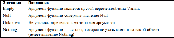 Таблица 1.9. Специфические значения, возвращаемые функцией TypeName