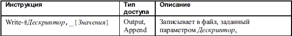Таблица 1.11. Инструкции последовательного доступа к файлу