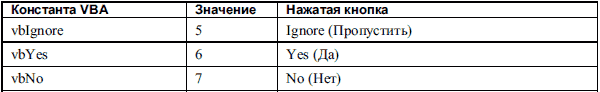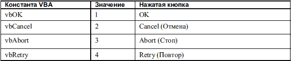 Таблица 1.13. Значения, возвращаемые функцией MsgBox