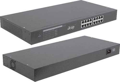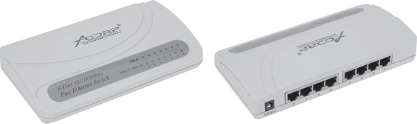 • Концентраторы с фиксированным количеством портов (рис. 4.5) – самые простые. Выглядит такой концентратор как отдельный корпус, снабженный определенным количеством портов и работающий на выбранной скорости. Как правило, один из портов служит для связи с другим концентратором или коммутатором.