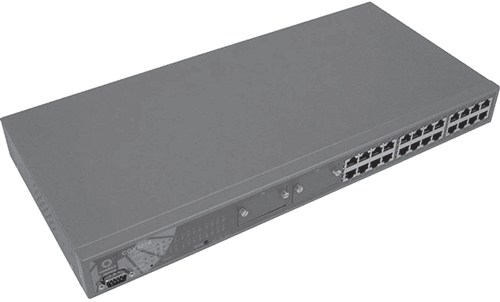 В зависимости от сложности концентратора на нем может присутствовать консольный порт (рис. 4.7), с помощью которого, используя специальное программное обеспечение, можно изменять некоторые параметры, конфигурировать порты или считывать их статистику.