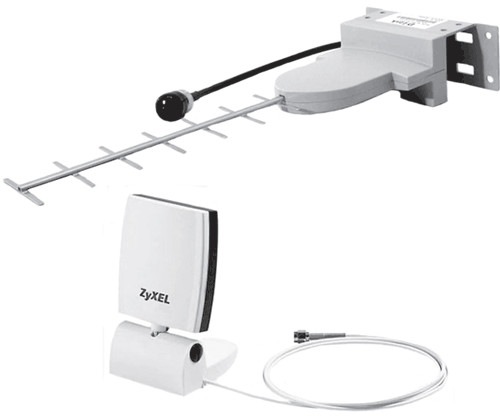 Антенны бывают внутренние (встроенные) и внешние (рис. 4.14) и отличаются в основном своей направленностью и мощностью. Так, узконаправленная антенна позволяет достичь более дальней связи, что и используют, когда необходимо соединить два удаленных сегмента беспроводной сети.