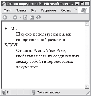 Как можно видеть на рис. 4.4, браузер по-разному отображает сами термины и определения этих терминов, причем делает это так, что сразу понятно, где определение, а где термин.