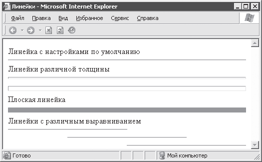 Далее приведен небольшой пример, в котором иллюстрируется использование различных значений атрибутов для линеек (пример 6.1).