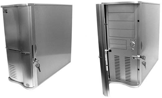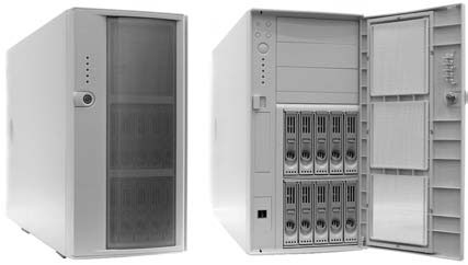 В корпус типа File Server обычно устанавливается блок питания мощностью не менее 400 Вт (а иногда и дополнительный, чтобы повысить отказоустойчивость системы). Такие корпусы имеют открывающуюся (откидывающуюся) переднюю крышку с замком, которая надежно скрывает элементы управления компьютером и устройствами хранения данных.