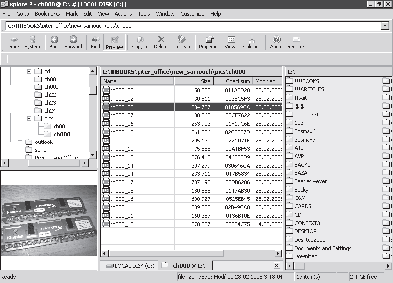 Рис. 2.13. Предварительный просмотр графического файла в окне xplorer2