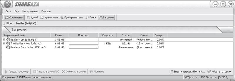 Рис. 2.23. Окно загрузки файлов в программе SHAREAZA