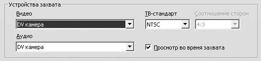 Во время захвата можно просматривать поступающее в компьютер изображение в Проигрывателе. Это очень удобно. Однако если производительность компьютера окажется недостаточной, то ценой просмотра будут пропущенные кадры захватываемого видео. Для включения/отключения возможности просмотра достаточно установить/снять флажок Просмотр во время захвата.