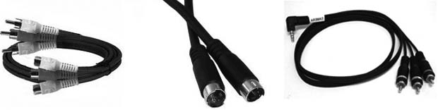 Для подключения к выходам видеокамеры (видеомагнитофона) и входам устройства захвата используются соответственно тройной и S-Video кабель (слева и в центре на рис. 2.15). Если у камеры есть выход AV, то используется кабель, показанный справа на рис. 2.15.
