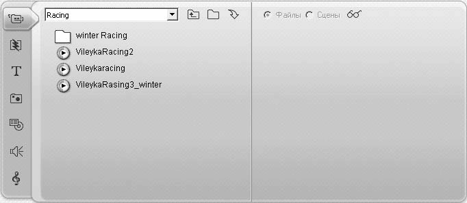 С помощью вкладки Видеоклипы можно просматривать и добавлять в проект видео, сохраненное ранее на жестком диске. Эта вкладка может использоваться как для навигации по папкам (каталогам) диска в поисках видео, так и для просмотра видеофайлов, управления сценами добавленного в проект файла. Однако обо всем по порядку.