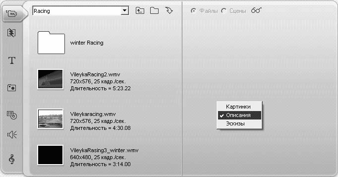 Полезна при поиске нужного видеофайла возможность Альбома отображать кадры из видеоклипа и предоставлять краткое описание файла (рис. 3.7).