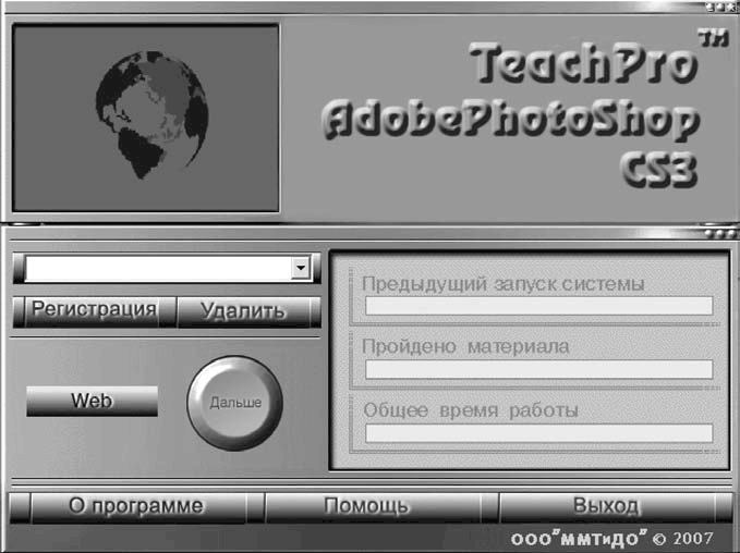 Рис. 02. Рабочее окно мультимедийного курса Adobe Photoshop CS3