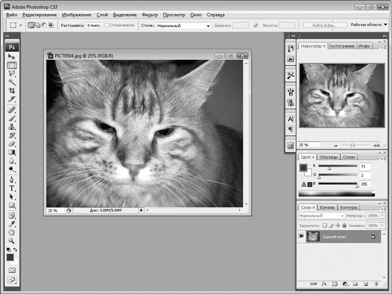 Если мы загрузим какое-либо изображение (Файл ? Открыть), последнее открывается в отдельном окне, расположенном в окне приложения. Данное окно мы будем называть окном документа (рис. 2.2).