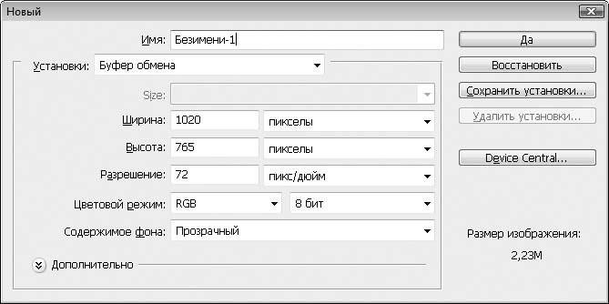 Рис. 2.15. Пустое окно документа с прозрачным фоном