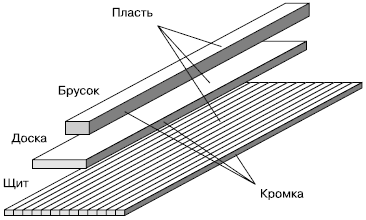 Натуральная древесина хвойных и лиственных пород долгое время служила основным материалом для производства мебели. Программы, рассматриваемые в этой книге, ориентированы главным образом на панельно-щитовую конструкцию мебели, поэтому ограничимся перечислением основных пиломатериалов и связанных с ними общих терминов.