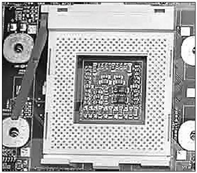 В 2000 году появился про цессор Pentium IV Willamette. Это был принципиально новый процессор, поддерживающий гиперконвейеризацию и много других передовых технологий. Процессор устанавливался в разъем Socket 423 (рис. 2.4), а его частота не пре вышала 2 ГГц для процессоров, выпу щенных в 2000 году. Плат форма Socket 423 продержалась на рынке процессоров рекордно мало: всего девять месяцев. С ноября 2000 по август 2001 го да. Больше Intel не поддерживает данную платформу. Она оказалась переходной, что вызвало негодование у многих пользователей. Судите сами. Вы покупаете новейший процессор (в конце 2000 года это был Pentium IV/Socket 423), выкладываете за новое «железо» много денег (новинки компьютерного мира всегда стоят дорого, через полгода цены идут на спад), и тут вас ждет сюрприз. Через девять месяцев Intel отказывается от текущей платформы и выходит на рынок с новой – Socket 478. Старое «железо» уже никому не нужно, да и модернизировать его не получится – нужно только менять материнскую плату.