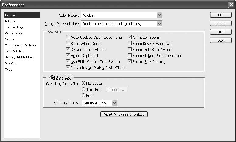 Запустите программу и выполните команду Edit ? Preferences ? General (Правка ? Установки ? Основные). Появится окно Preferences (Установки) (рис. 2.8).