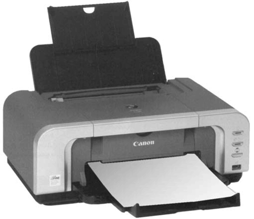 • струйные принтеры (рис. 1.12), печать на которых осуществляется разбрызгиванием капель жидкой краски. При цветной печати капли разного цвета смешиваются;