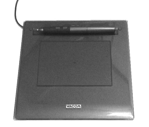 Планшет представляет собой пластину, лежащую на столе, по которой можно водить прилагаемой электронной ручкой (рис. 1.17). При этом работающий графический редактор (специальная программа для создания и редактирования изображений) понимает сигналы планшета и отображает на экране монитора заданную линию. Можно вообще использовать графический планшет вместо мыши, хотя к этому надо привыкнуть.