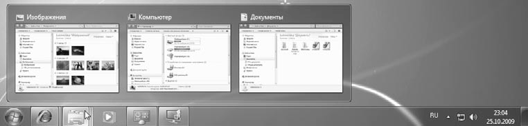 При наведении указателя мыши на любую кнопку Панели задач появляется эскиз содержимого окна. Причем, если в окне отображается видео или анимация, вы также сможете ее увидеть. Эта функция позволяет быстро найти нужное окно среди нескольких подобных. Если кнопка объединяет несколько экземпляров одного приложения, вы увидите отдельные эскизы для каждого экземпляра окна (рис. 3.8).