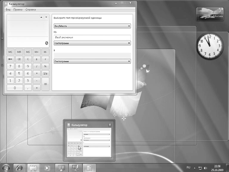 Рис. 3.9. Просмотр окон с помощью эффекта Aero Peek