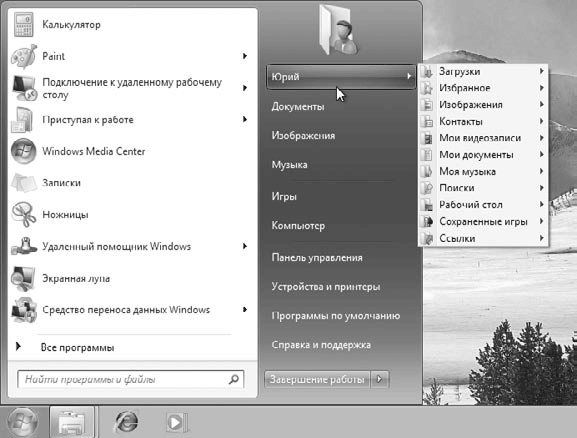 Рис. 3.29. Личная папка пользователя, отображаемая в виде меню