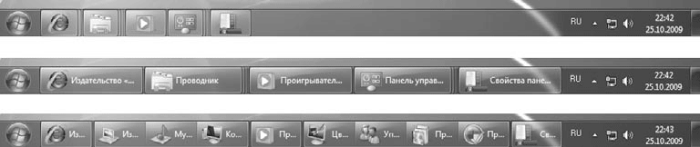 Рис. 3.31. Варианты отображения кнопок на Панели задач