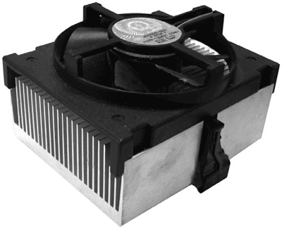 Обычно применяют комбинацию пассивного и активного охлаждения. Например, на процессоре установлен и радиатор, и вентилятор (рис. 2.4). Радиатор в данном случае отводит тепло от процессора, а вентилятор способствует эффективному охлаждению радиатора, обдувая его.
