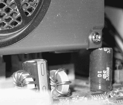Иногда из-за неграмотного подбора комплектующих отдельные компоненты чисто механически несовместимы в одном компьютере. На рис. 3.10 показано, как в тесном корпусе довольно дорогой и качественный блок питания одним углом упирается в конденсатор на материнской плате. Рано или поздно это приведет к замыканию или тому, что конденсатор просто оторвется от платы. Единственным разумным решением в данной ситуации был бы выбор другого, более просторного корпуса.