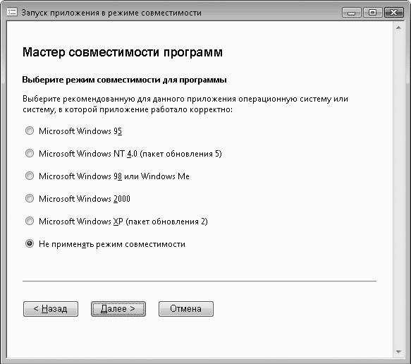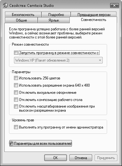 Рис. 3.15. Вкладка Совместимость окна свойств приложения