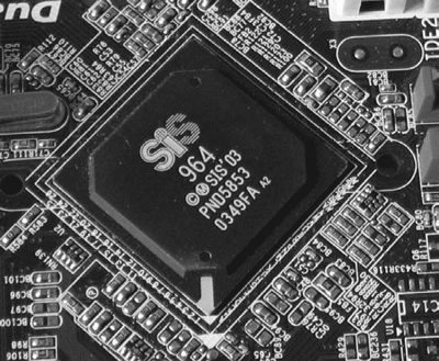Чипсет (Chipset) – это набор основных микросхем материнской платы. Если вы посмотрите на нее, то увидите одну или две большие микросхемы. Одна из них расположена недалеко от сокета и часто скрыта радиатором охлаждения. Вторая – в нижней части материнской платы, если считать, что процессор установлен в верхней. Эти две микросхемы являются основными микросхемами чипсета. Верхняя называется северным мостом, нижняя – южным (рис. 4.2 и 4.3). Северный мост иногда дополнительно охлаждается вентилятором.