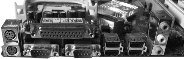 Вы обязательно найдете тут разъемы для клавиатуры и мыши, порт LPT для принтера, COM-порт, к которому можно подключить внешний модем или иное оборудование и несколько разъемов USB. Все это собрано на так называемую панель разъемов (рис. 4.11).