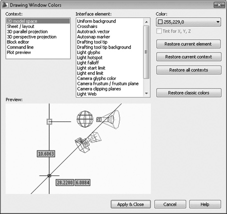 Рис. 2.4. Диалоговое окно Drawing Window Colors (Цвета окна чертежа)