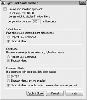Рис. 2.15. Диалог Right-click Customization (Настройка правой кнопки)