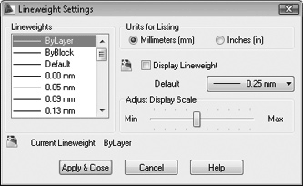Рис. 2.16. Диалог Lineweight Settings (Настройки весов линий)