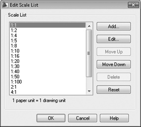 10. Нажмите кнопку Edit Scale List (Редактировать список масштабов) вкладки User Preferences (Настройки пользователя). Откроется диалог Edit Scale List (Редактировать список масштабов) (рис. 2.17).